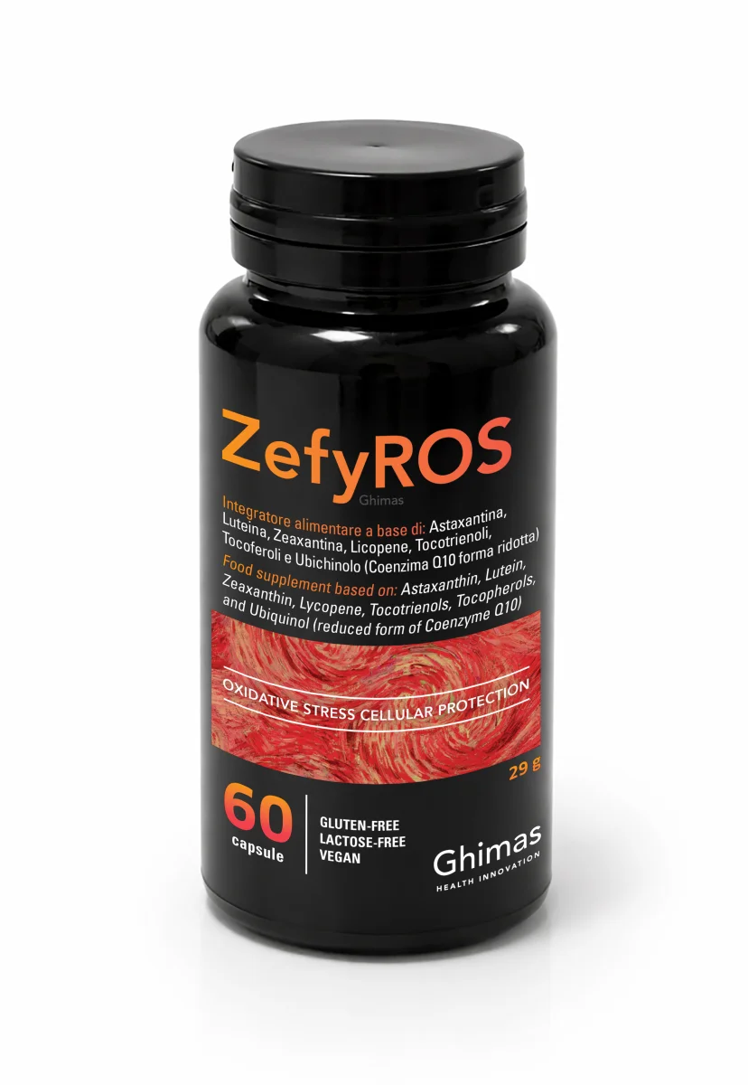 Food supplement based on astaxanthin from Haematococcus pluvialis with antioxidant action, lycopene, tocotrienols and tocopherols that contribute to the protection of cells from oxidative stress*, lutein, zeaxanthin and ubiquinol.